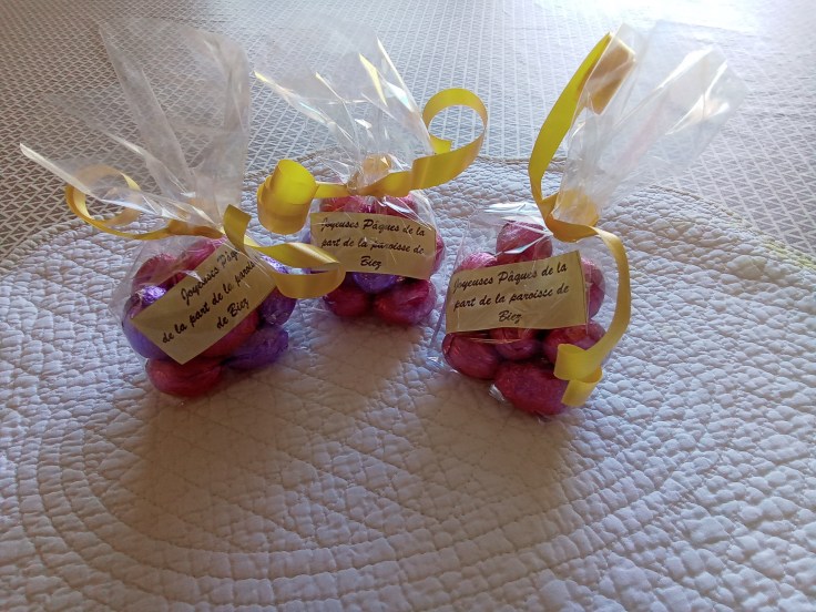 Pour fêter Pâques « Au Privilège » à Ittre, Myriam nous a concocté de beaux et bons petits paquets d’œufs en chocolat, chacun a pu en recevoir un après la messe ; et même le personnel du secrétariat en a profité. Merci Myriam !