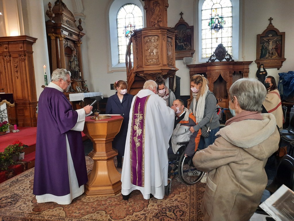 Ce dimanche 28 novembre, Loïc, habitant de la résidence » Les Renardeaux »* à Blanmont à reçu le sacrement de baptême, la confirmation et l’eucharistie. Un jour de fête pour la paroisse de Blanmont, Père Henry qui rencontre Loïc régulièrement était très heureux ainsi que tous les paroissiens. Merci à Bernard Coquel, diacre de la paroisse, à la chorale et à tous les participants qui ont rendu cette célébration si joyeuse. Nous te souhaitons une belle route avec le Seigneur, cher Loïc, à très bientôt,