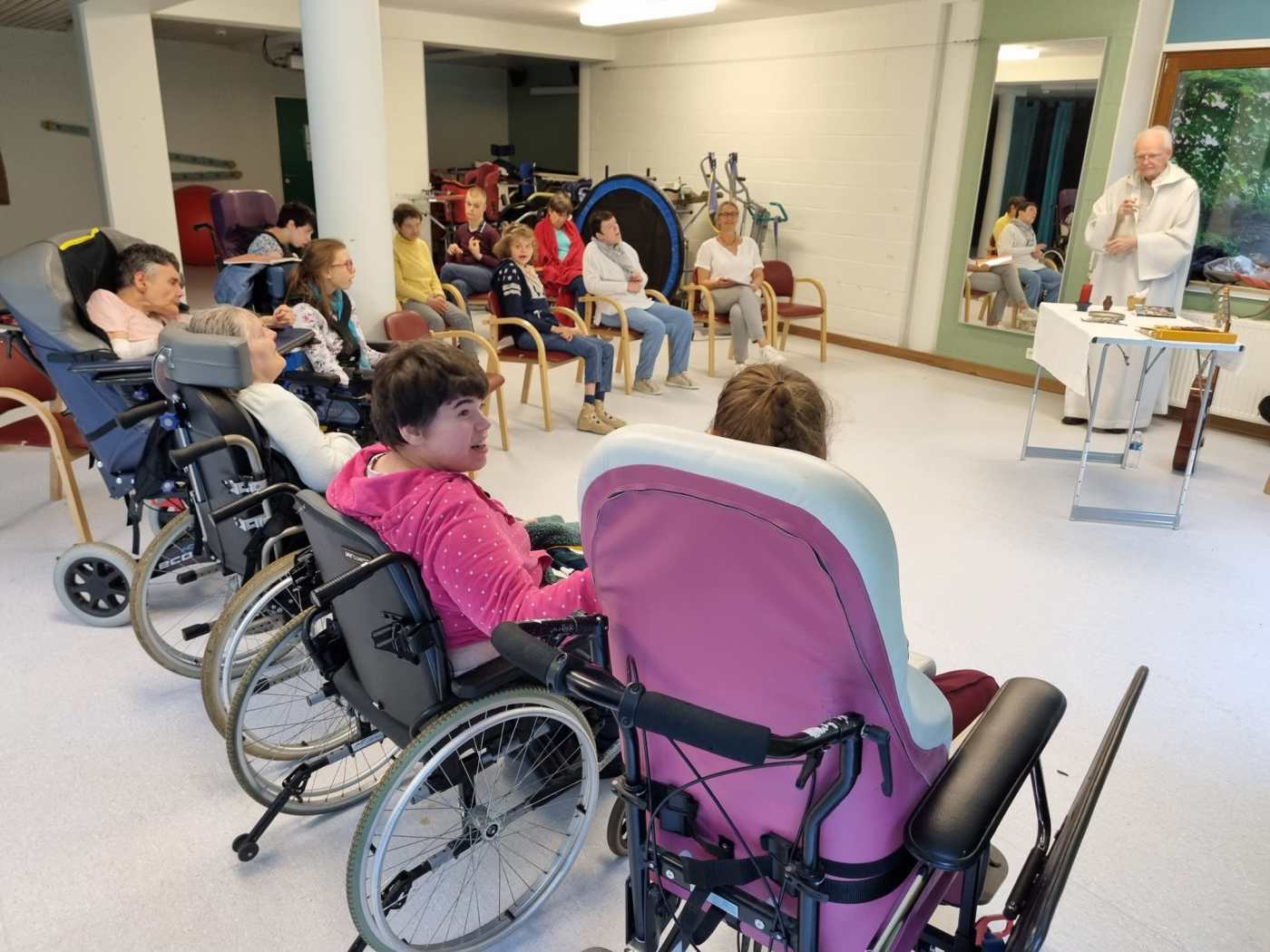 Comme tous les mois, nous nous sommes retrouvés dans la grande salle au Farra-Clerlande pour une belle célébration eucharistique. Farra-Clerlande est une institution pour personnes en situation de handicap située dans un cadre de verdure à Ottignies. Accompagné de sa guitare, Père Michel anime ce moment avec joie, les sourires de chacun nous confirme la présence du Seigneur au milieu de nous.