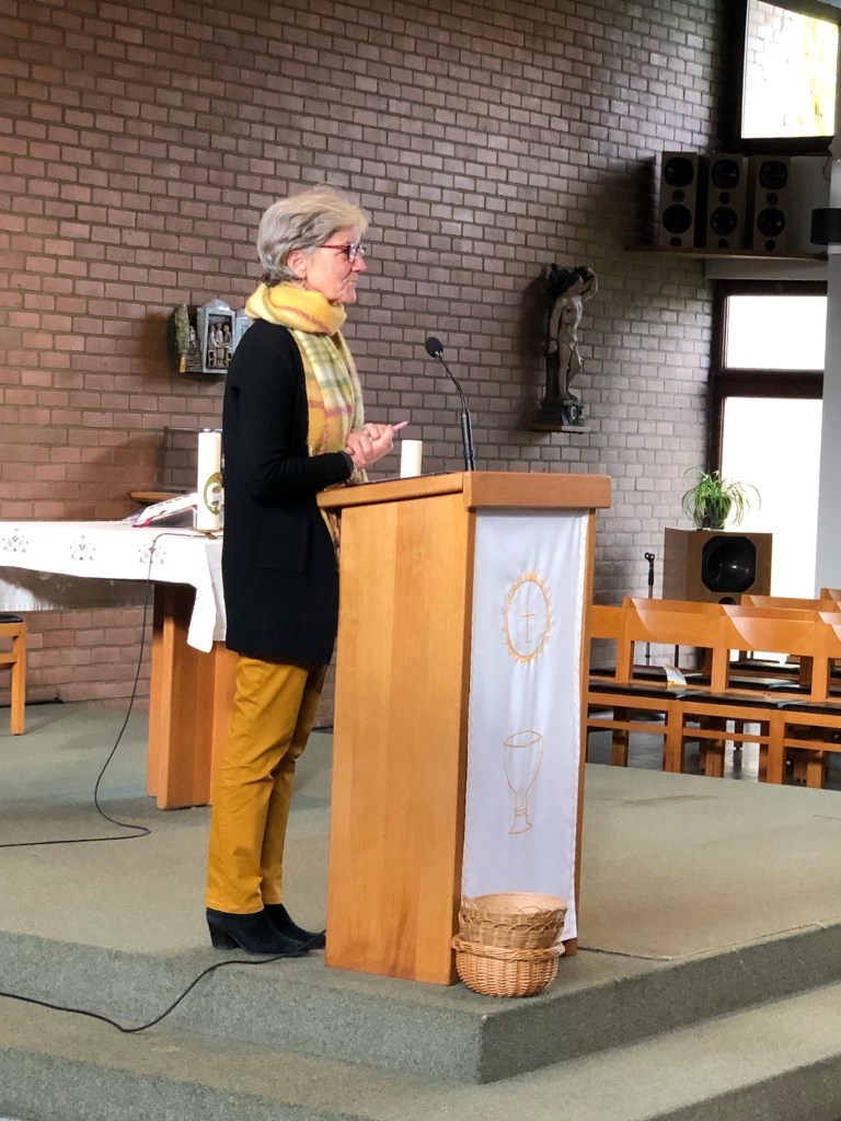 Marie-Thérèse nous a ouvert les Ecritures en nous remémorant les différentes rencontres et figures bibliques ; passant de Moïse à Elie puis du Samaritain aux disciples d’Emmaüs vers « la veuve de Naïm » pour ensuite terminer par la rencontre avec Dieu au travers de la question « quand t’avons-nous visité ? accueilli ? donné à boire ? » de l’Evangile de Matthieu 25.