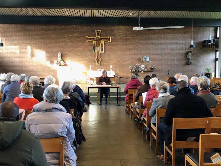 Lundi 21 novembre dernier, nous accueillions Marie-Thérèse Hautier dans le cadre d’une récollection pour nos visiteurs et visiteuses ; le matin à Braine-l’Alleud et l’après-midi à Wavre. Près d’une centaine d’entre eux ont répondu à notre invitation.