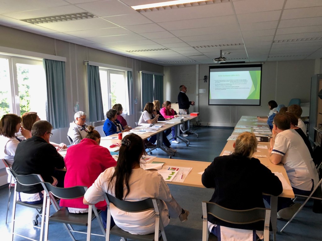 C’est à la demande de la direction des services infirmiers qu’a eu lieu au mois de mai une présentation des différentes « spiritualités » par le professeur Jacquemin (UCL), aux cadres et infirmièr(e)s de l’hôpital.