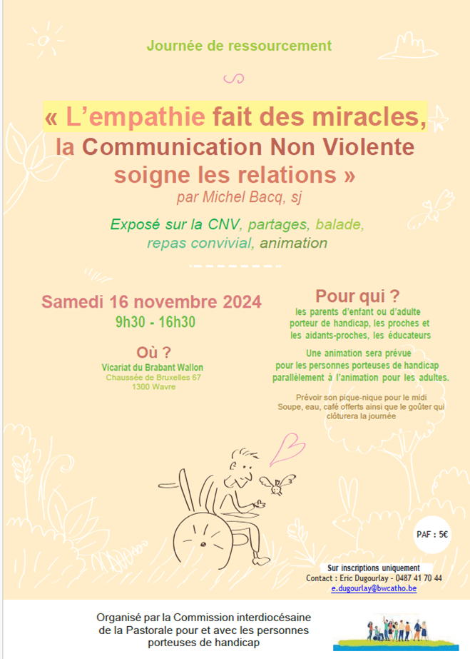 Pour l’inscription ou des questions, merci de contacter Eric Dugourlay au 0487 41 70 44, ou par mail à l’adresse suivante : e.dugourlay@bwcatho.be .