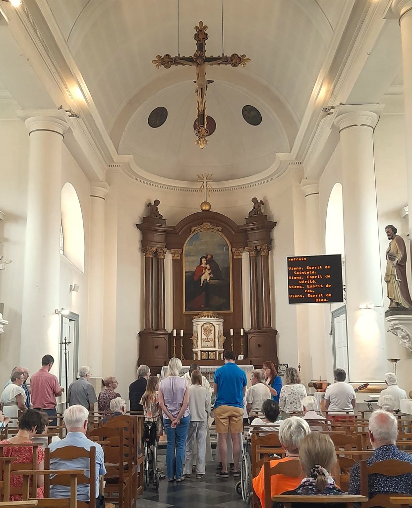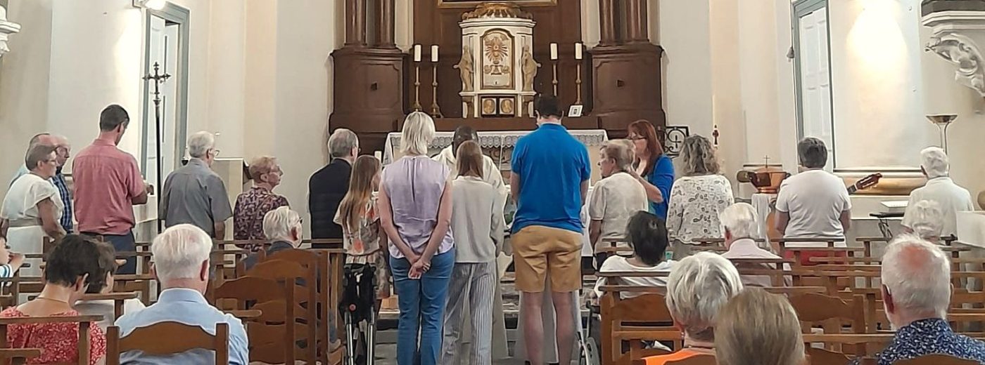 Le 22 juin dernier, les paroissiens de l’unité pastorale de Beauvechain se sont rassemblés lors d’une messe dominicale à l’église Saint-Amand pour célébrer le Sacrement des Malades. Une quinzaine de personnes (dont une famille entière !) a pu bénéficier de cette onction, signe de la présence de Dieu au cœur de nos fragilités. À l’image de l’évangile du jour portant sur la multiplication des pains, le père Guillaume a porté l’assemblée avec foi et confiance. Un apéro convivial a suivi cette messe particulièrement fraternelle, ayant permis d’unifier dans l’espérance plusieurs générations.