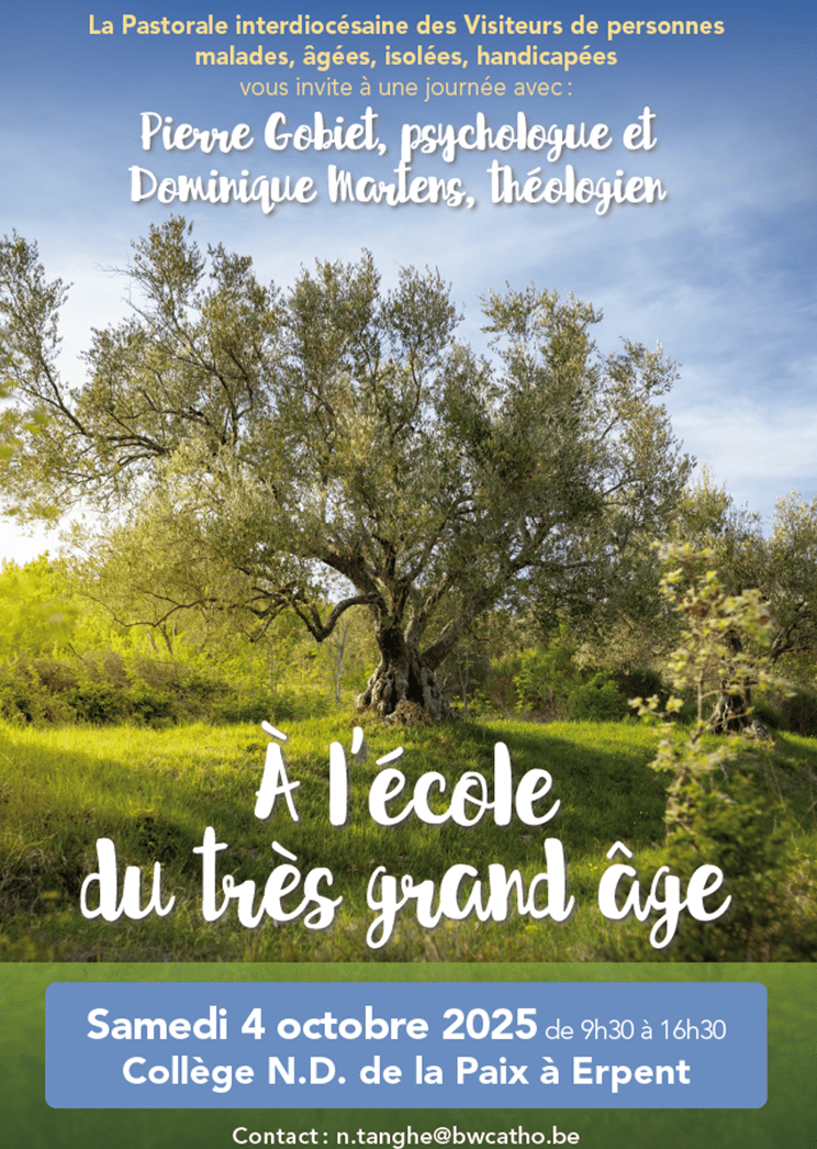 Le samedi 4 octobre 2025, la pastorale interdiocésaine des visiteurs de personnes malades, âgées, isolées, handicapées vous invite à une journée avec Pierre Gobiet (psychologue) et Dominique Martens (Théologien).