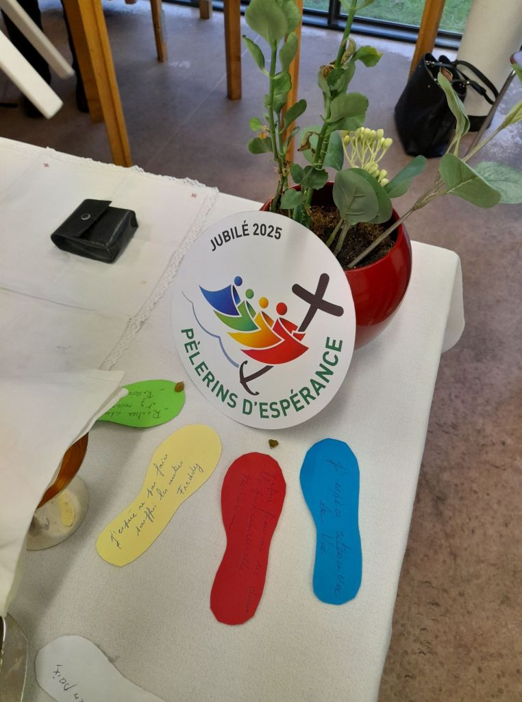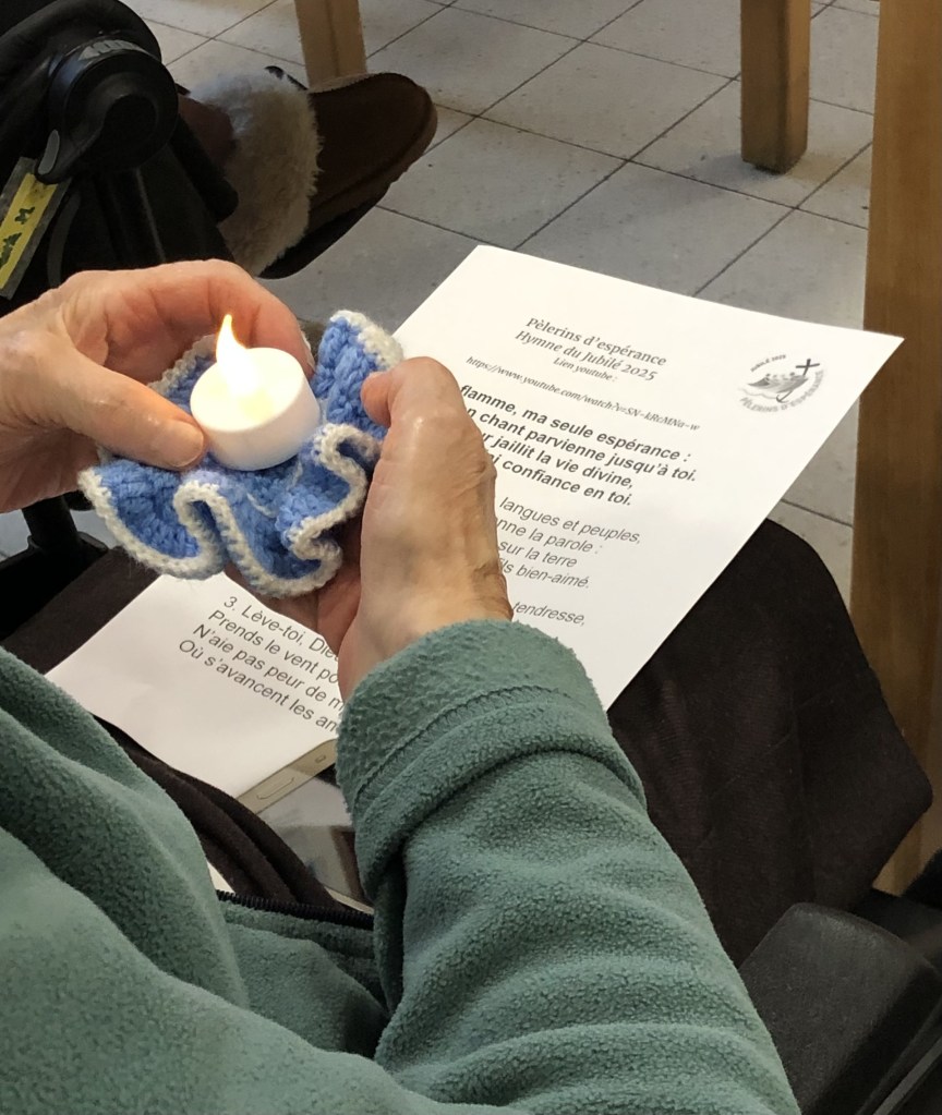 Messe, hymne, cartes prières, vidéos jubilaires, mur et place de l’Espérance… Tant de moments et d’outils ont jalonné ce Jubilé en vue de valoriser le trésor que sont les personnes âgées – comme l’affirmait le Pape François, et de les aider à se mettre en route pour devenir à leur tour des signes d’espérance. Certains résidents ont partagé fraternellement leur vision de l’Espérance grâce à des ‘empreintes de pas’ en papier ; d’autres ont prié en action grâce aux ‘petits pas de la parole’. Tous ont été interpellés par le sens de ce Jubilé, portés par la communion, et pour quelques-uns, par le sacrement de Réconciliation.